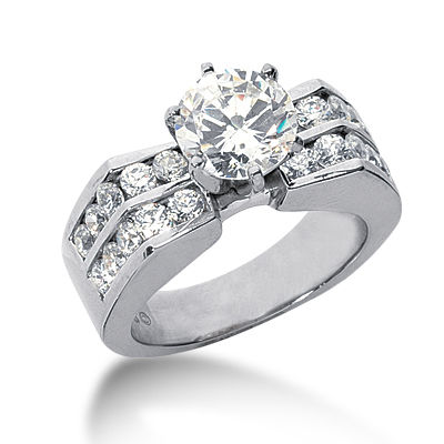 Ladies 14KT White Gold Platinum Round Diamond Fancy Engagement Ring ENR3149