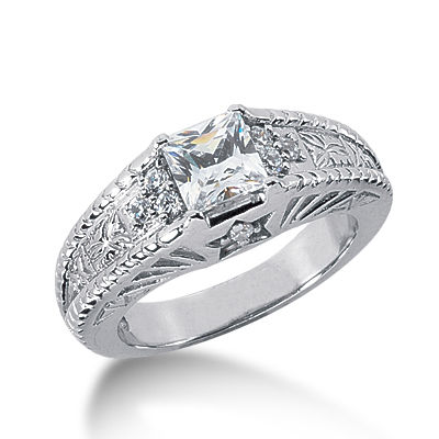 Ladies 14KT White Gold Platinum Princess Diamond Antique Engagement Ring ENR2998