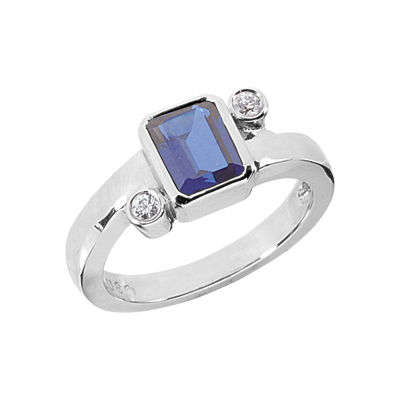 Ladies White Gold Platinum Emerald Cut,Oval Diamond Color Stone Ring CSR1043