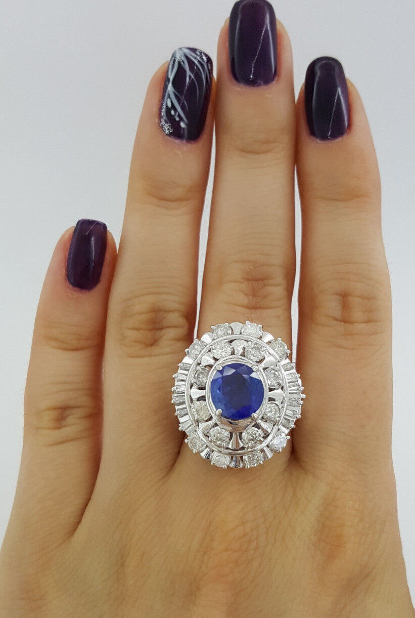 Vintage Platinum Oval Cut No Heat Sapphire & Diamond Double Halo Ring 5.34 ct
