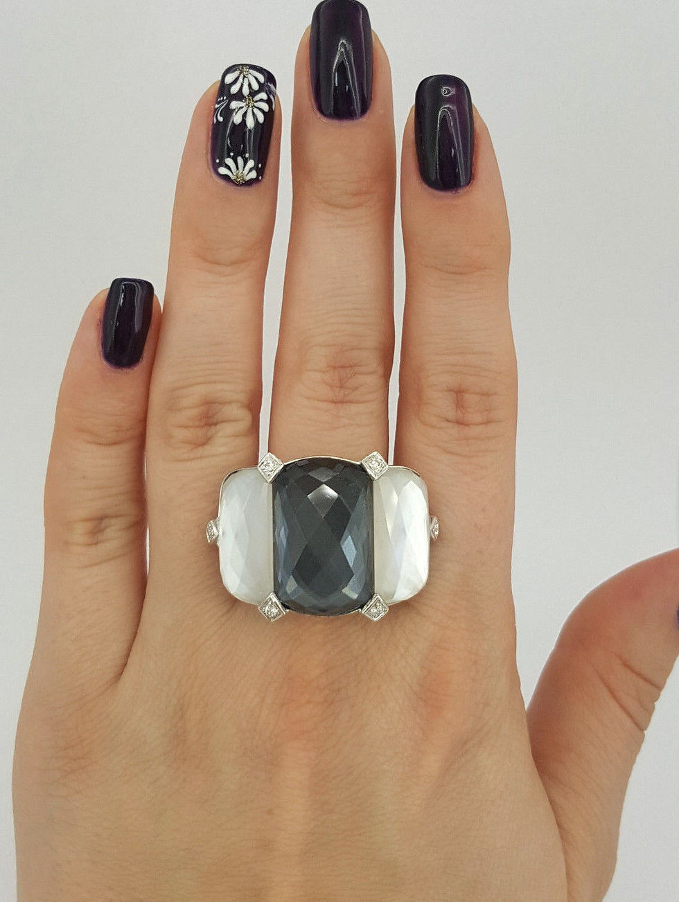 Stephen Webster Poison Ivy Threesome Quartz Hematite MOP Diamond 18K W Gold Ring